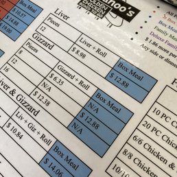Donahoo’s Golden Chicken Menu